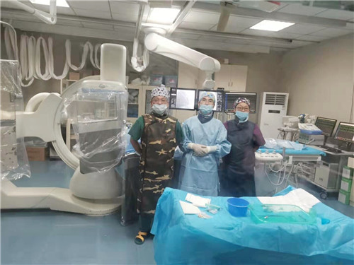 時(shí)間就是心肌,時(shí)間就是生命。為了用最短的時(shí)間、以最快的速度、贏得最佳的搶救機(jī)會(huì),多科室齊心協(xié)力,緊密配合,同步運(yùn)作:農(nóng)醫(yī)生初步判斷該患者應(yīng)為急性冠脈綜合征,立刻電話通知手術(shù)醫(yī)護(hù)趕回醫(yī)院,激活導(dǎo)管室;心血管內(nèi)科病房啟動(dòng)“心梗一套”,這是他們?yōu)榭s短心梗病人入導(dǎo)管室手術(shù)時(shí)間所制定的一套完備流程,CCU病房準(zhǔn)備完畢,術(shù)前用藥送達(dá)導(dǎo)管室;功能檢查科張慧副主任醫(yī)師攜帶設(shè)備,在導(dǎo)管室門口為病人完成了心臟彩超檢查,排除心肌病可能;術(shù)前的5粒抗栓藥物需嚼服加速藥效,貼心的農(nóng)醫(yī)生準(zhǔn)備了一杯溫水,幫患者潤(rùn)嗓子的同時(shí),也安撫了他緊張的情緒;在導(dǎo)管室隔壁接受胸部CT掃描后,最終確認(rèn)了急性冠脈綜合征的判斷;剛下夜班返家的心內(nèi)科徐先進(jìn)副主任醫(yī)師和休假中的導(dǎo)管室副護(hù)士長(zhǎng)程微也已爭(zhēng)分奪秒地趕到導(dǎo)管室,與農(nóng)醫(yī)生匯合,完成了所有術(shù)前準(zhǔn)備。