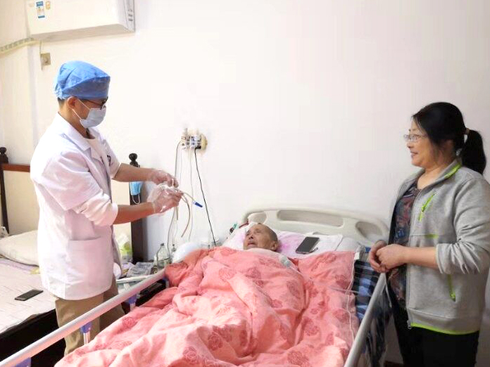 為提高病人出院后的生活質(zhì)量,減少并發(fā)癥,科主任劉長虹、護(hù)士長胡蝶帶領(lǐng)我們神經(jīng)外科團(tuán)隊,每月對出院病人進(jìn)行電話回訪并開展上門延伸服務(wù)。一些植物生存狀態(tài)的病人不能自主飲食,大小便失禁,出院后仍攜帶胃管和尿管,但因為行動不便,往往不能在規(guī)定時間內(nèi)更換管道,從而引起各種感染及并發(fā)癥,延伸護(hù)理服務(wù)恰好解決了這一難題。我們的醫(yī)護(hù)人員每月定期上門服務(wù),為患者更換管道并進(jìn)行復(fù)診,根據(jù)患者現(xiàn)狀提供及時的專業(yè)醫(yī)療和護(hù)理指導(dǎo)。