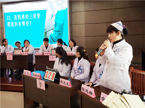 “三級(jí)醫(yī)院主要功能是什么?”“手衛(wèi)生的五大時(shí)刻是什么?”“門(mén)診突發(fā)事件應(yīng)如何應(yīng)對(duì)?”“麻醉藥品應(yīng)做到哪‘五專(zhuān)’?”昨天,我院在多功能廳舉辦創(chuàng)三級(jí)醫(yī)院知識(shí)競(jìng)賽團(tuán)隊(duì)賽。來(lái)自全院4個(gè)支部的9支代表隊(duì)共27名選手圍繞醫(yī)院服務(wù)、患者安全、醫(yī)療及護(hù)理質(zhì)量管理等三級(jí)醫(yī)院評(píng)審相關(guān)知識(shí)點(diǎn)展開(kāi)激烈角逐。
