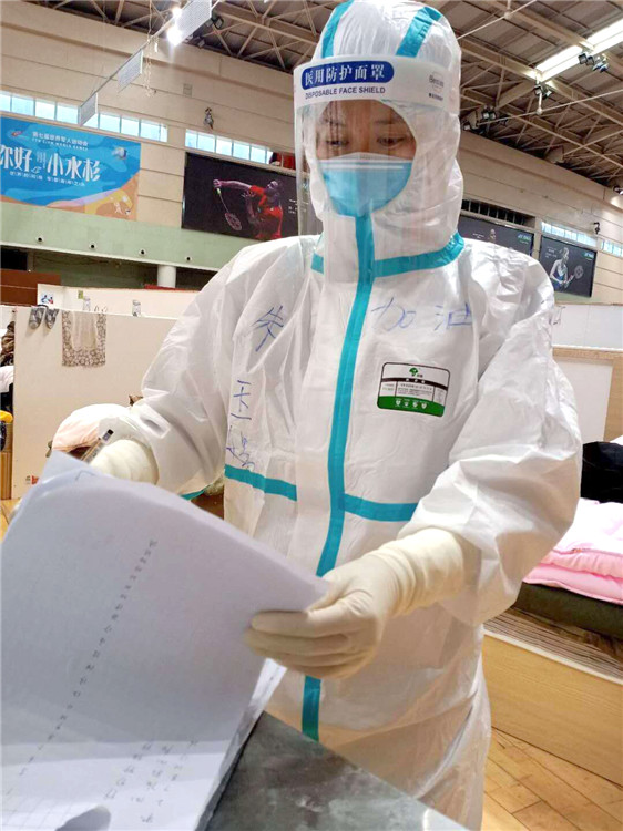 勇士媽媽朱玉娣帶著女兒的鼓勵(lì),已經(jīng)在方艙醫(yī)院第一線奮戰(zhàn)了十余天,她所在的護(hù)理組要連續(xù)工作4個(gè)班次,才能休息2天,每個(gè)班次需要不間斷工作6、7個(gè)小時(shí),加上穿脫防護(hù)裝備、清潔消毒手衛(wèi)生、來回路程,每次將近10個(gè)小時(shí)不能吃、不能喝、不能上廁所。進(jìn)艙后,和自己區(qū)的醫(yī)護(hù)人員交接班,巡視病人,按時(shí)測(cè)量體溫、血氧飽和度、呼吸頻率、血壓,詢問病情,發(fā)藥等等。如果病情有變化或者病人有不適主訴,及時(shí)向當(dāng)班醫(yī)生匯報(bào)。遇到區(qū)內(nèi)有重癥病人,朱玉娣總是不厭其煩地去床邊觀察病情,把情況反饋給醫(yī)生,必要時(shí)為其安排轉(zhuǎn)院治療。