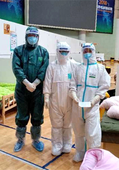 2月12日下午4點(diǎn),武漢市開發(fā)區(qū)體育中心方艙醫(yī)院正式啟用,在仔細(xì)穿戴隔離衣、防護(hù)服、護(hù)目面屏等防護(hù)裝備后,朱玉娣第一次進(jìn)艙??吹劫即蟮捏w育館空蕩蕩的,此時(shí),還沒有病人進(jìn)來,醫(yī)護(hù)人員卻已經(jīng)忙碌起來,將前期準(zhǔn)備工作做好。4點(diǎn)40分,第一批約30名確診新冠肺炎病人進(jìn)艙,朱玉娣和隊(duì)友們趕緊為他們辦理入院登記,帶他們到自己的床位,給他們鋪床,幫助領(lǐng)取基本生活用品,交代入院注意事項(xiàng),測(cè)量體溫、血氧飽和度、血壓等,同時(shí)通知床位醫(yī)生。安排好這一切,第二批、第三批病人也陸續(xù)進(jìn)艙。這個(gè)忙碌的夜晚讓朱玉娣久久難忘,快速適應(yīng)陌生的環(huán)境并投入緊張的工作,穿梭在病人間,不停地溝通交流、搬運(yùn)東西。不知不覺已經(jīng)到了深夜10點(diǎn)半下班時(shí)間,在接班醫(yī)護(hù)人員的催促下,交接完自己區(qū)的病人后,相互鼓勵(lì)加油,朱玉娣和隊(duì)友出艙。出艙后,每個(gè)隊(duì)員額面上、耳朵上都有著深深的壓痕,身上的手術(shù)衣被汗水浸濕。這天晚上,體育中心方艙共收治了377個(gè)確診病人。