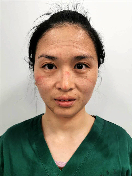 經(jīng)過1天短暫的休整,朱玉娣和隊(duì)友們參加了緊張的防護(hù)培訓(xùn),回到酒店,也一直在房間進(jìn)行穿戴防護(hù)裝備的練習(xí),直到深夜。為了更方便工作,朱玉娣毫不猶豫地剪去了多年養(yǎng)起的長發(fā)。