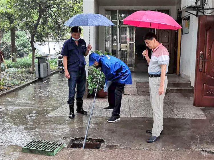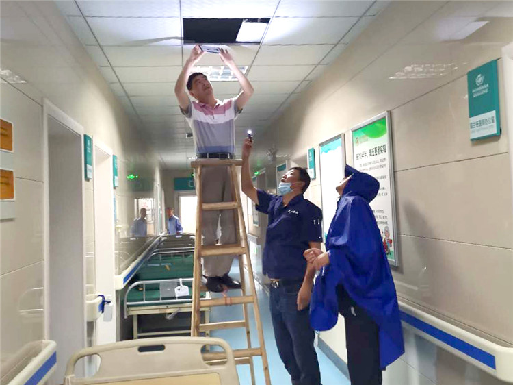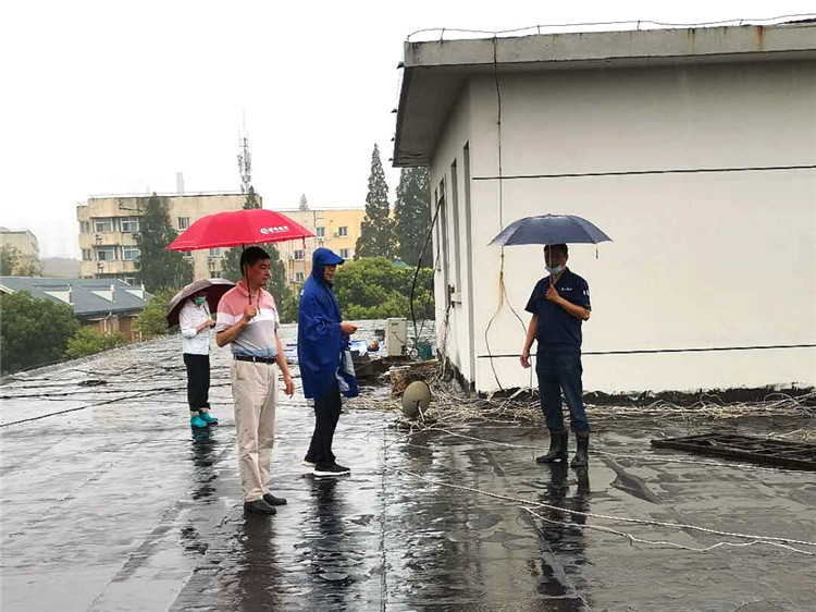 作為醫(yī)院的“黨員安全示范崗”,行政綜合科全體員工及物業(yè)人員在科主任、老黨員、“安全示范員”胡來寶的帶領下,積極發(fā)揮先鋒作用,持續(xù)奮戰(zhàn)在醫(yī)院安全防汛工作第一線。他們加大巡查力度,深入院內(nèi)及醫(yī)院外圍查看汛情,排查隱患;積極應對積水、滲水、漏水現(xiàn)象,及時清理阻塞物,確保排水通暢無阻,緊急消除漏水險情,決不影響醫(yī)療救治。