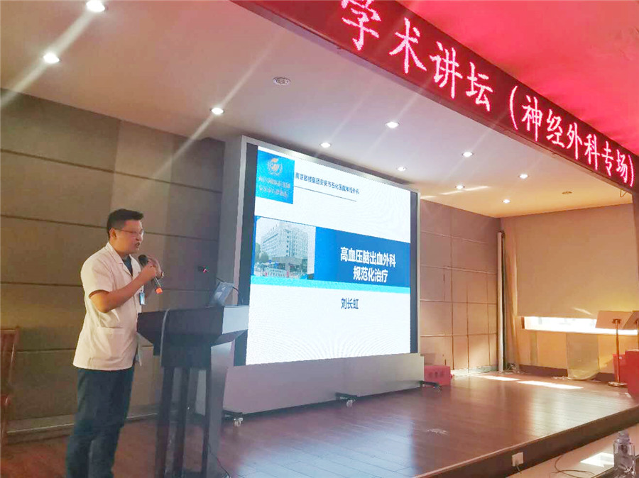 隨后,神經(jīng)外科劉長虹主任、孫良中副主任醫(yī)師分別以《高血壓腦出血的外科規(guī)范化治療》、《全腦血管造影的臨床應(yīng)用》為題做報(bào)告。