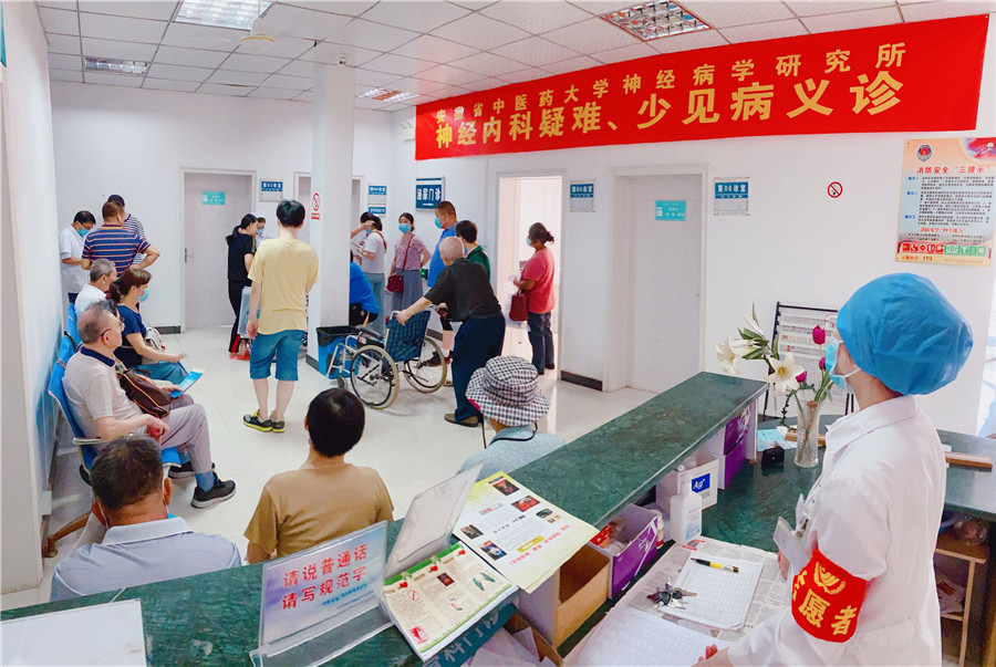儀式結(jié)束后,安徽中醫(yī)藥大學(xué)神經(jīng)病學(xué)研究所附屬醫(yī)院的專家團(tuán)隊(duì)在該院專家門診開(kāi)展神經(jīng)系統(tǒng)疑難、少見(jiàn)病義診,慕名而來(lái)的患者擠滿了走廊。