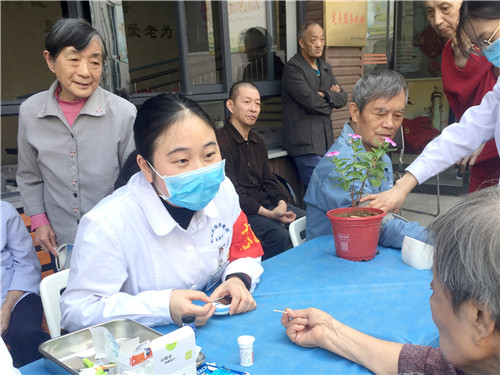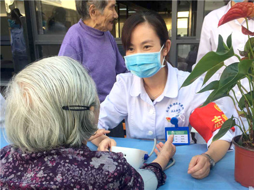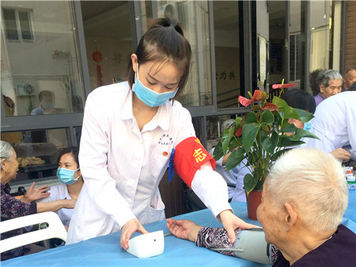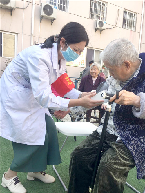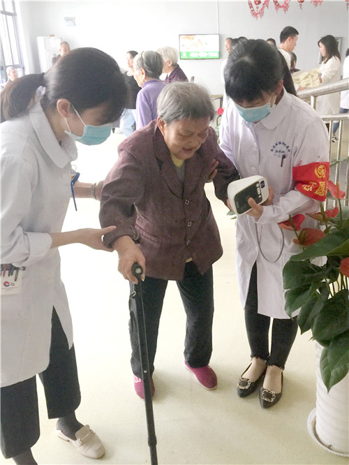 來自臨床一線的志愿者們利用專業(yè),為老人們量血壓、測血糖,指導(dǎo)康復(fù)訓(xùn)練及日常保健。骨科檀甲梅副護士長還巧遇了曾經(jīng)的患者,老奶奶對我院醫(yī)護贊不絕口,“石化醫(yī)院技術(shù)好,服務(wù)也好!”