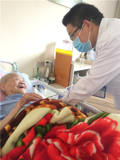 志愿者們還走進房間,為行動不便的臥床老人們服務(wù),趙小康副主任和吳振醫(yī)生給臥床的老人檢查皮膚并了解用藥情況,向護理員提出了一些指導(dǎo)意見。