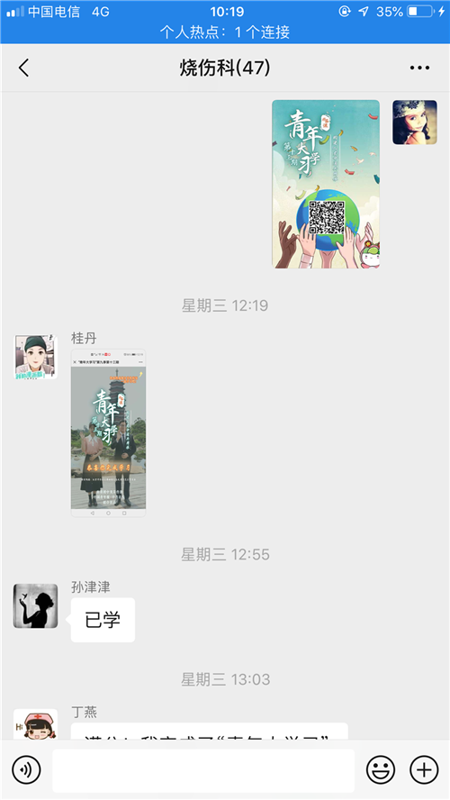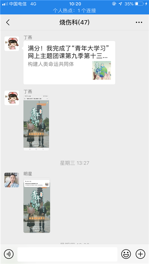 在科室內(nèi)大力開展“青年大學習”,學習習近平總書記新時代中國特色社會主義思想,全體青年醫(yī)護積極參加,堅定了他們“敢于有夢、勇于追夢、勤于圓夢”的決心。
