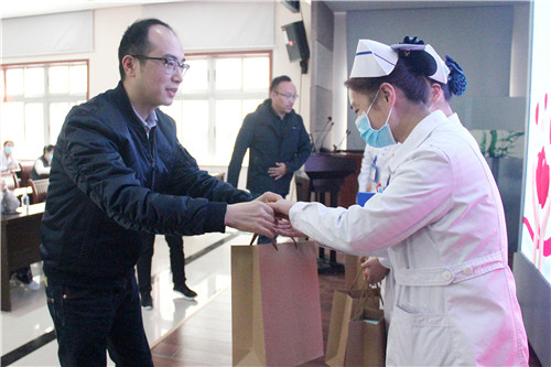 市總工會職工服務中心副主任吳孟致辭,他向在此次疫情防控中,不顧安危馳援武漢的我院6名巾幗英雄以及堅守崗位守護民生的院內500多名白衣女戰(zhàn)士致以誠摯的敬意。市總工會體恤女職工在疫情大考中承擔的壓力,心系她們的身心健康,為幫助女職工紓解不良情緒,給予關懷慰藉,特別準備了雙重溫暖福利。