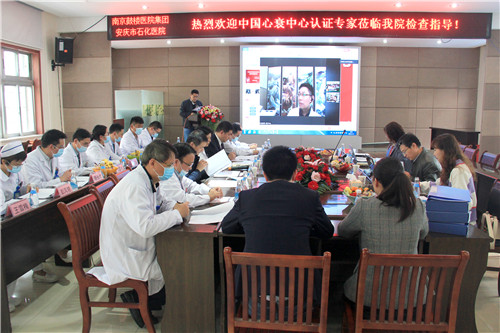 數(shù)據(jù)填報(bào)、材料整理、人員培訓(xùn)、患者教育及隨訪等一系列工作有條不紊地進(jìn)行。經(jīng)過幾個(gè)月嚴(yán)格的網(wǎng)絡(luò)初審、專家評(píng)審后,11月17日,我們迎來了復(fù)旦大學(xué)附屬中山醫(yī)院周京敏教授率領(lǐng)的現(xiàn)場(chǎng)專家核查小組。黨委書記陳勝、院長(zhǎng)韋寧華及心衰中心主任花杰副董事長(zhǎng)、心內(nèi)科主任汪念東副院長(zhǎng)、心內(nèi)科副主任徐先進(jìn)等心衰中心委員、成員及相關(guān)領(lǐng)導(dǎo)參與現(xiàn)場(chǎng)核查。