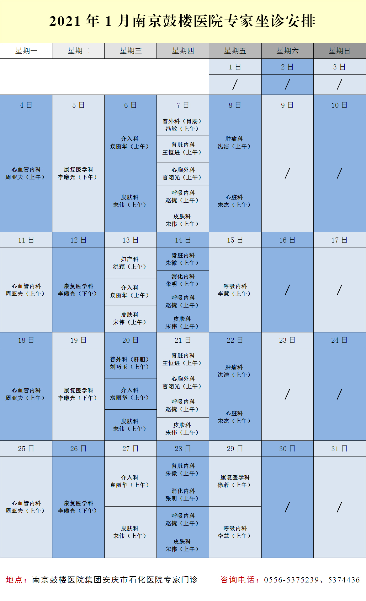 趕緊收好下圖的2021年1月南京鼓樓醫(yī)院專家坐診安排,轉(zhuǎn)發(fā)給你需要的親戚朋友吧!