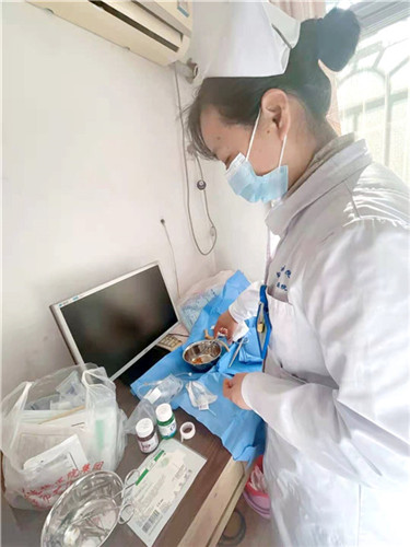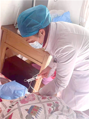 任女士前不久剛進行了免疫治療聯(lián)合靶向治療,期間藥物副反應較大。但因家中有事無人陪護,并未完成后期規(guī)律監(jiān)測治療,便提前出院回家休養(yǎng)。1月13日上午,床位醫(yī)生胡麗娜在電話隨訪中了解到,任女士近期出現(xiàn)了便秘、頭暈、惡心嘔吐、全身骨痛等癥狀,身體極為虛弱,不便按期來院行PICC置管換藥??浦魅乌w成和護士長張林妹得知該情況后,立即決定當天下午就前往任女士家中。