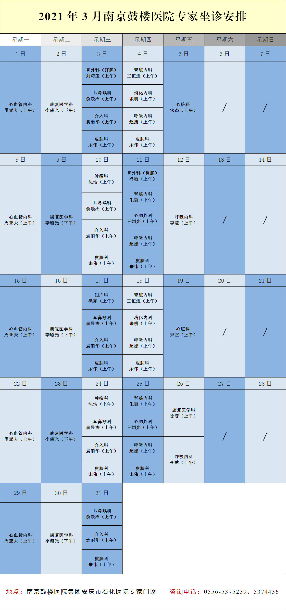 趕緊收好下圖的2021年3月南京鼓樓醫(yī)院專家坐診安排,轉(zhuǎn)發(fā)給你需要的親戚朋友吧!
