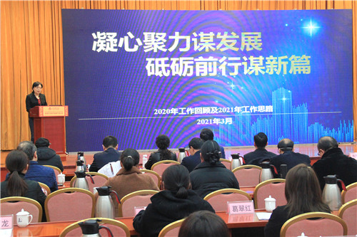 院長(zhǎng)韋寧華以《凝心聚力謀發(fā)展 砥礪前行謀新篇》為題,回顧總結(jié)2020年工作,安排部署2021年任務(wù)。她指出,2020年,在突如其來(lái)的新冠疫情面前,全院職工共同努力,完成了援鄂出征和醫(yī)院常態(tài)化防疫的勝利。同時(shí)圍繞三級(jí)醫(yī)院創(chuàng)建工作,在業(yè)務(wù)發(fā)展上解難題,在經(jīng)濟(jì)運(yùn)行中破困局,在內(nèi)涵建設(shè)上打基礎(chǔ),一手抓防疫,一手抓醫(yī)療,較好地完成了各項(xiàng)工作任務(wù),并在黨建、管理、醫(yī)療、科研等各項(xiàng)工作中都取得很大進(jìn)步和成績(jī)。