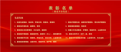 黨委副書記、副院長(zhǎng)、工會(huì)主席汪文曉宣讀《關(guān)于表彰2020年度醫(yī)院先進(jìn)集體和先進(jìn)個(gè)人的通報(bào)》,號(hào)召全體職工以先進(jìn)為榜樣,不忘初心、牢記使命,為實(shí)現(xiàn)醫(yī)院新一年度各項(xiàng)工作目標(biāo)作出新的更大貢獻(xiàn)。出席大會(huì)的院領(lǐng)導(dǎo)分別為先進(jìn)集體和先進(jìn)個(gè)人代表頒獎(jiǎng)。