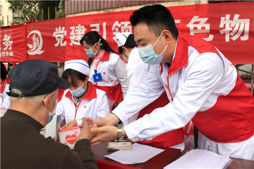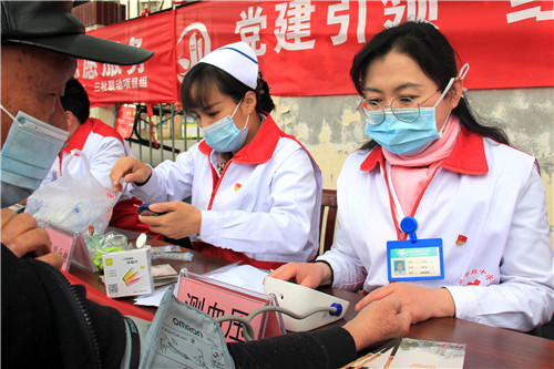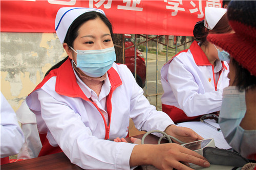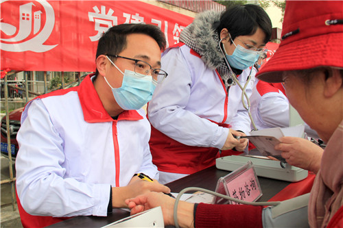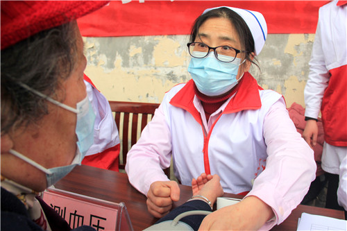 前來問詢看診的市民絡(luò)繹不絕,每一位志愿者秉持著“奉獻(xiàn)、友愛、互助、進(jìn)步”的志愿者精神,以飽滿的熱情引導(dǎo)、接待每一位市民,為他們監(jiān)測血壓血糖、面對面答疑解惑。