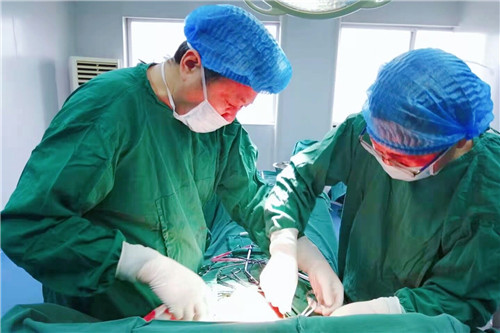 手術(shù)當(dāng)天,普通外科吳爾水主任、喬東升副主任醫(yī)師早早進(jìn)入手術(shù)室。因腫瘤較大,切除后可能出現(xiàn)無法縫合切口需植皮的情況,而植皮又存在移植皮膚缺血壞死的可能。為此,兩位專家反復(fù)推敲,巧妙設(shè)計(jì)切口,憑借精準(zhǔn)嫻熟的操作,與麻醉科團(tuán)隊(duì)默契配合,為徐奶奶成功實(shí)施“右乳癌改良根治術(shù)”,切口也在沒有張力的情況下順利縫合。