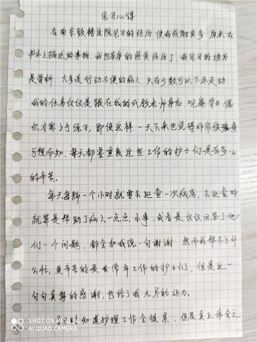 南京鼓樓醫(yī)院特色的人文文化和學(xué)科文化深深感染了同學(xué)們,她們?cè)谝?jiàn)習(xí)心得中寫(xiě)下感悟,紛紛表示受益匪淺,一定會(huì)加倍努力,早日成為一名合格的白衣天使。