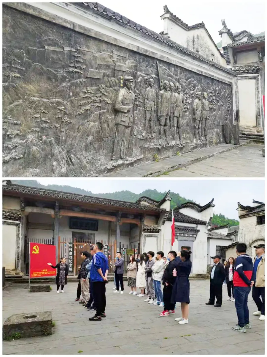 青年團(tuán)員們跟隨講解員走進(jìn)紀(jì)念館,映入眼簾的是一張張歷史照片、一件件戰(zhàn)士們使用過的冷兵器;駐足沙盤前,追憶由紅七軍團(tuán)組建的北上抗日先遣隊在皖南地區(qū)的慘烈戰(zhàn)斗。一本生動的“黨史教科書”展現(xiàn)在大家眼前,每個人的心靈都受到震撼。