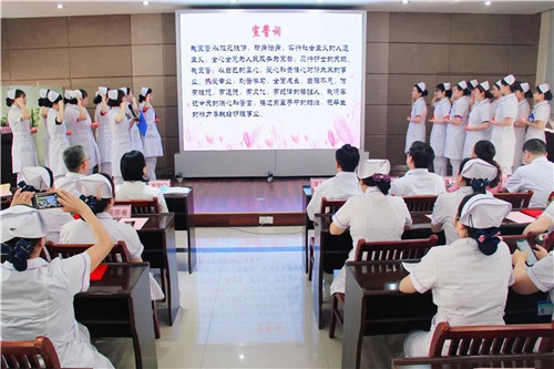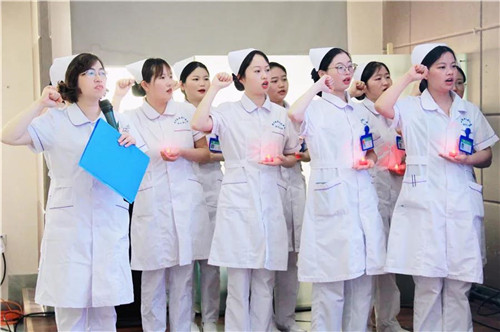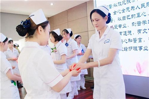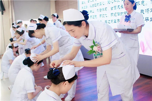 新進(jìn)護(hù)理人員接受護(hù)理前輩授帽,接過象征傳承的燭火,并在前輩老師的帶領(lǐng)下宣讀南丁格爾誓言。這是她們走向工作崗位、完成角色轉(zhuǎn)變的重要時刻。