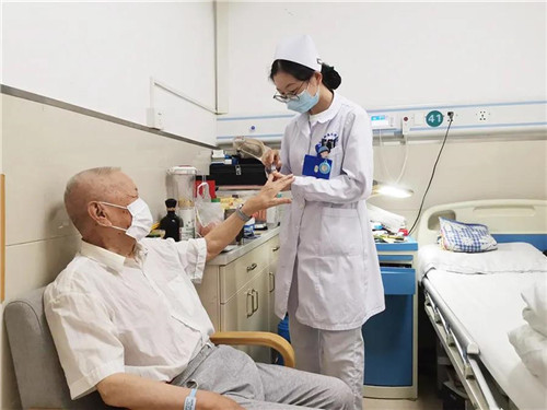 “昨晚睡得好嗎?”“您今天看起來氣色不錯!”清晨,病床前護士輕柔地問候,真誠又暖心。
