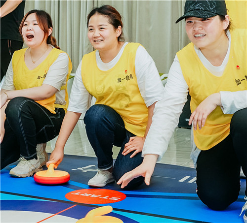 室內(nèi)冰壺活動(dòng),團(tuán)員們拼盡全力,一決高下