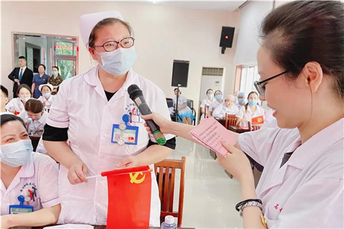 新黨員向他們獻上鮮花,致以最崇高的敬意,感謝他們多年來為醫(yī)院發(fā)展做出的貢獻。