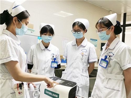 麻醉科主管護(hù)師程鳳仙為青年們講解手術(shù)室儀器的專業(yè)知識(shí)。