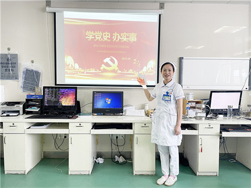 骨科副護(hù)士長(zhǎng)檀甲梅開展“學(xué)黨史、辦實(shí)事”專題講座,并為團(tuán)員青年們普及“骨質(zhì)疏松癥預(yù)防”的相關(guān)知識(shí)。