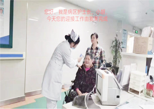 “阿姨,您好,請問能告訴我您的床號和姓名嗎?”治療有稱呼聲,在做每一項(xiàng)治療和操作前,禮貌親切問候,增加互相間的信任。