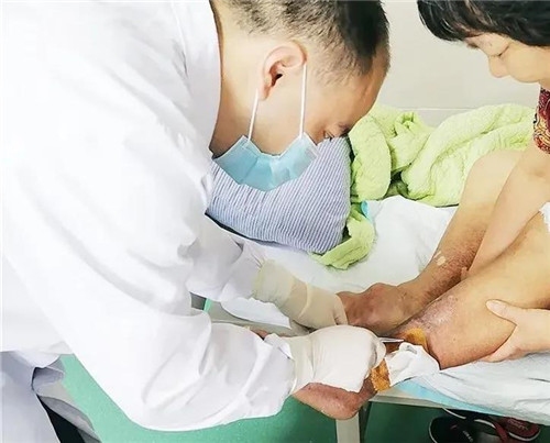 燒傷整形科韓張杰主任醫(yī)師、內(nèi)分泌科余慶華主治醫(yī)師為王先生切除了左小腿潰瘍并擴(kuò)創(chuàng),給予負(fù)壓吸引,同時(shí)進(jìn)行左小腿植皮。
