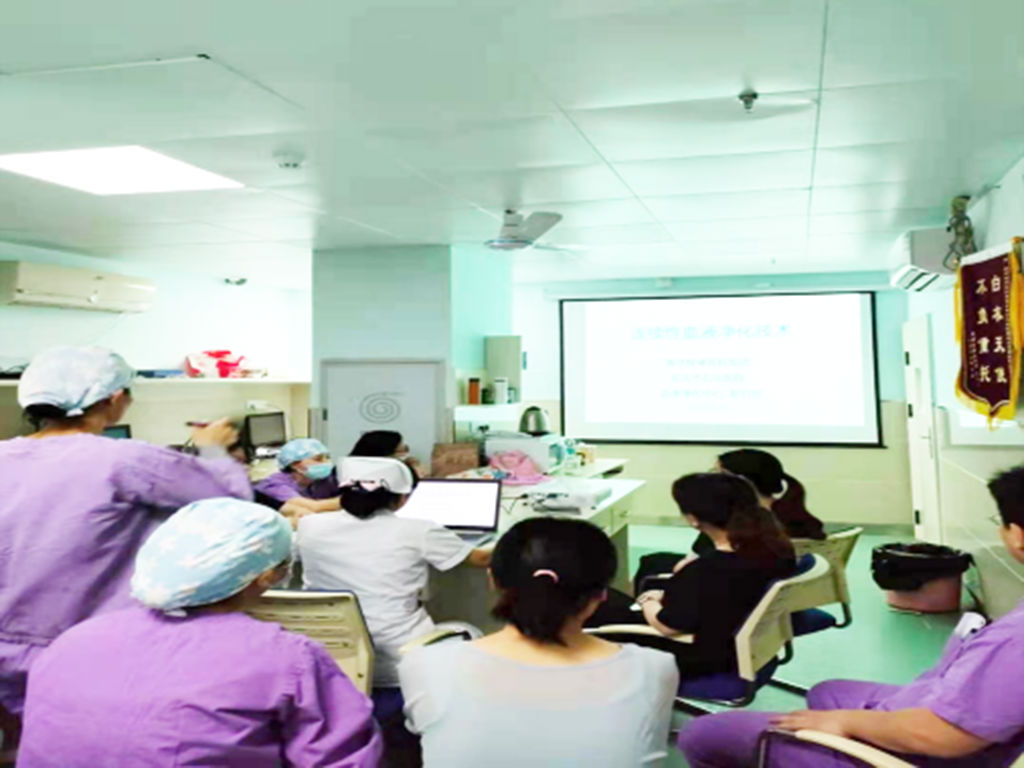 理論學(xué)習(xí):邀請血透??谱o(hù)士彭竹枝進(jìn)行授課;多次派科室骨干參加省內(nèi)三甲醫(yī)院開展的CRRT培訓(xùn)班學(xué)習(xí)。