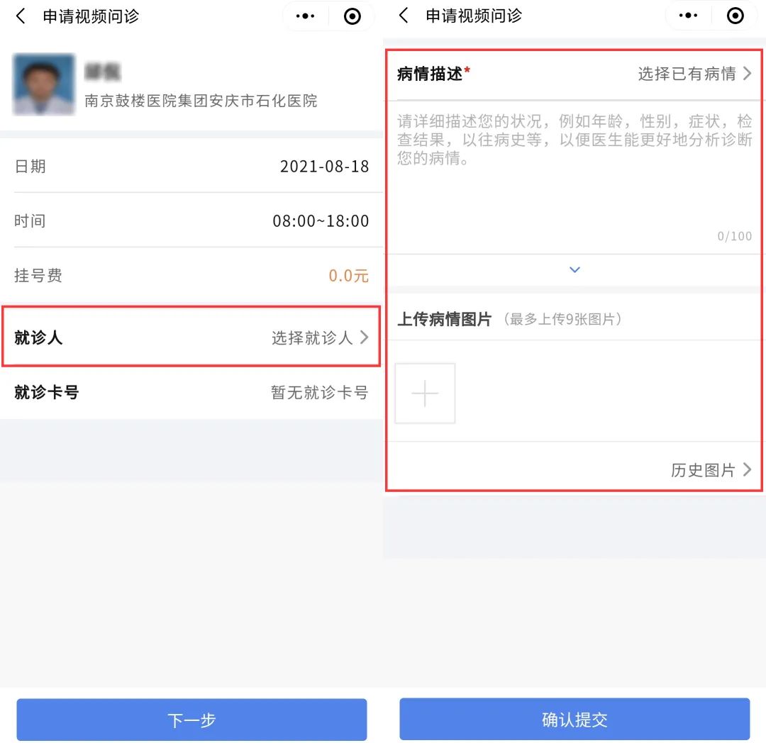 五、選擇就診人信息,并完成病情描述,確認(rèn)提交,等待醫(yī)生回復(fù)