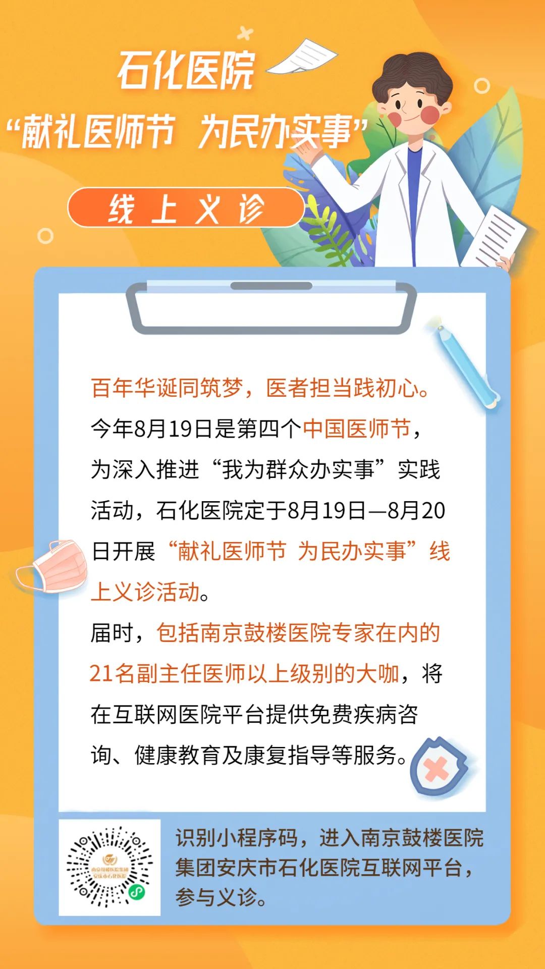 線上義診時(shí)間:8月19日—8月20日 8:00—18:00