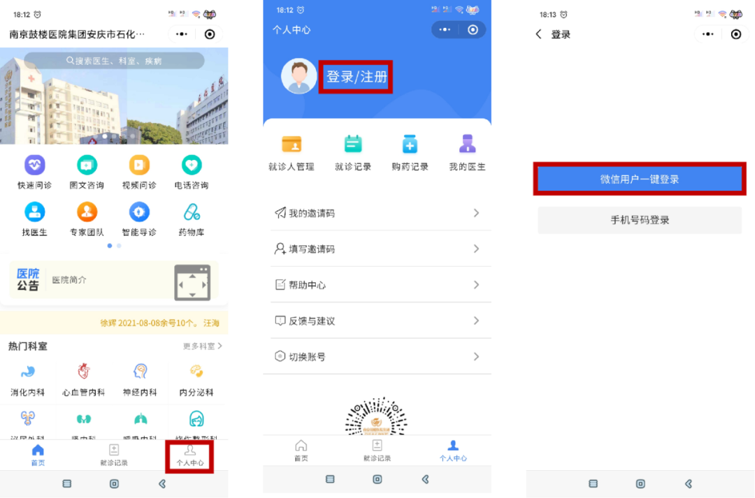 “個人中心”-“登錄”-“微信用戶一鍵登錄”