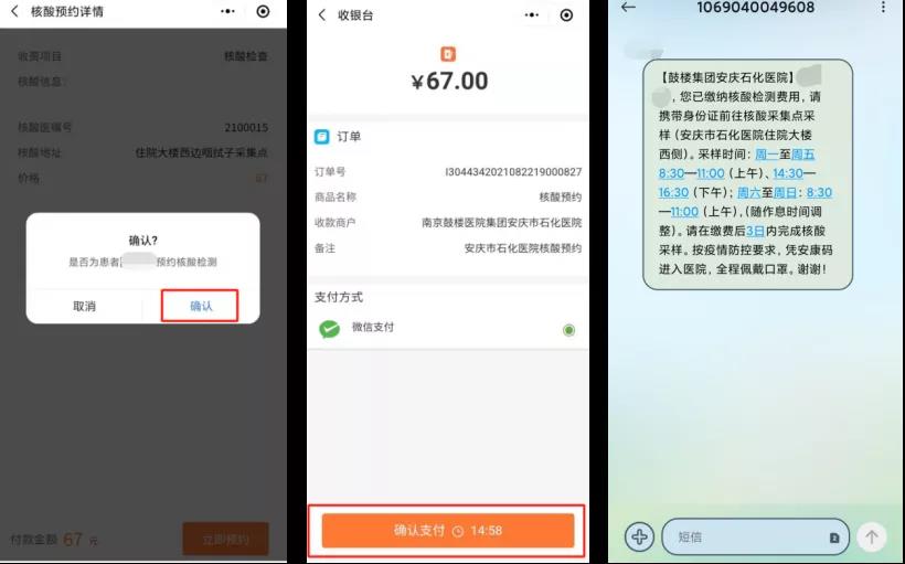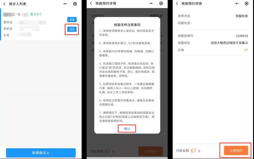 “確認”-“立即支付”,支付完成后將收到預約短信