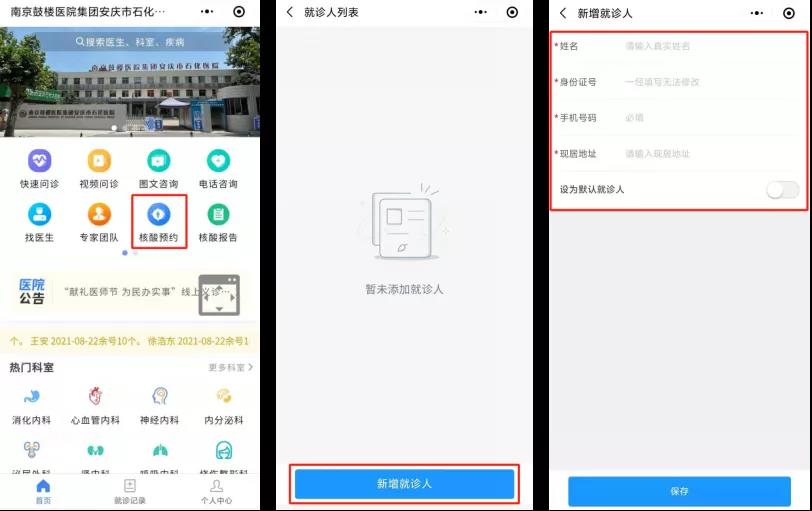 “首頁 ”-“核酸預約”-“新增就診人”信息
