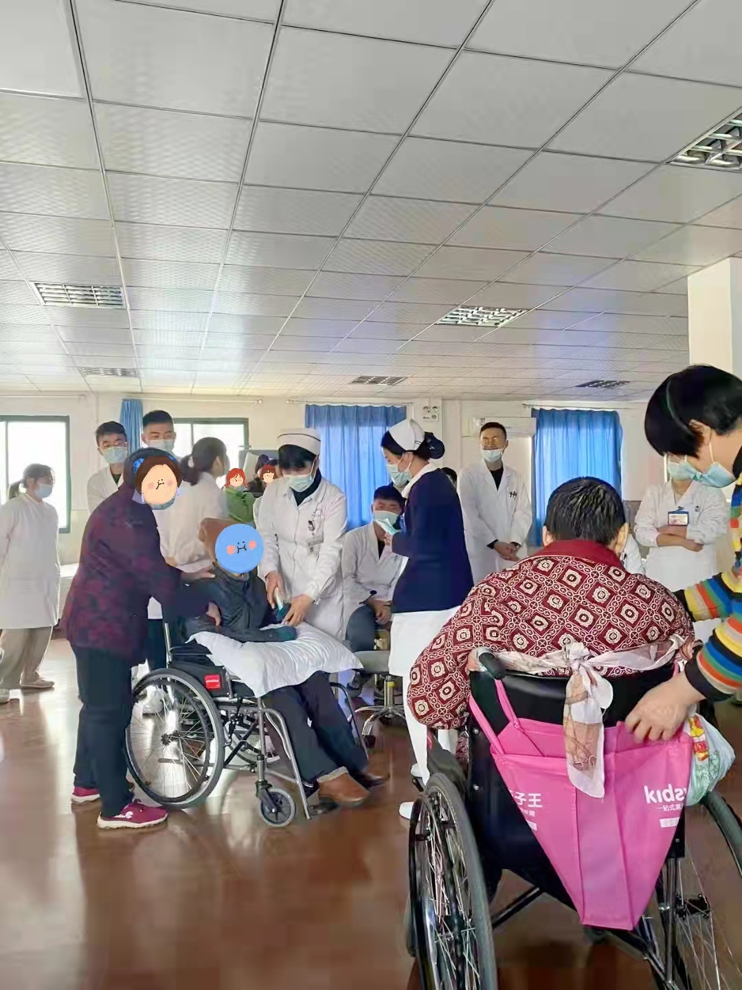 康復(fù)醫(yī)學(xué)科全體醫(yī)生、治療師、護(hù)士共同參與,手把手為大家糾正動(dòng)作。