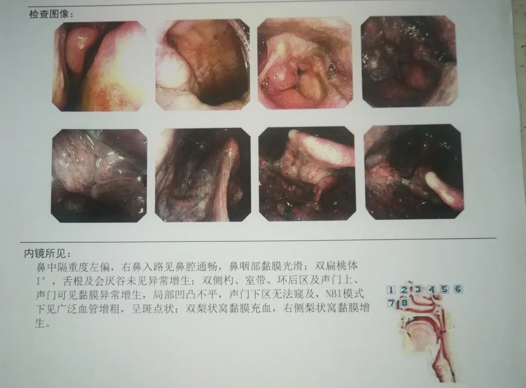 該患者天生侏儒,已有三十年煙酒史。5年前,開始出現(xiàn)間歇性聲嘶,因種種原因,并未及時(shí)前往醫(yī)院檢查。2個(gè)月前,聲嘶加重,咳嗽明顯,并有輕度呼吸困難,遂來到石化醫(yī)院求醫(yī)。