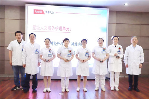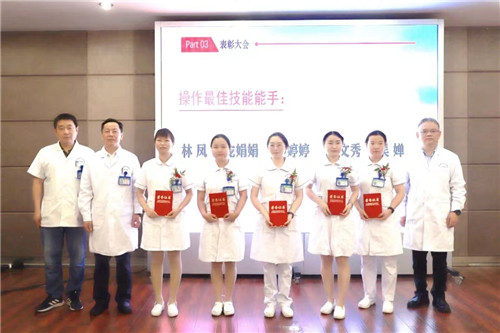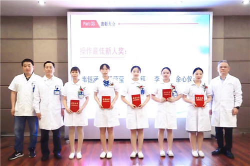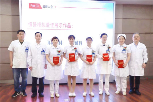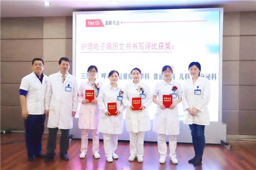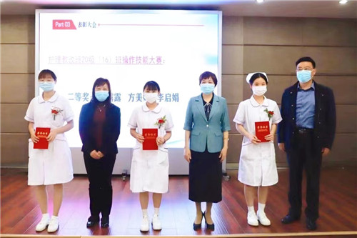 黨委書記王東波、副書記汪文曉、副院長汪念東依次為“從心出發(fā),人文服務(wù),優(yōu)質(zhì)護(hù)理”競賽最佳新人獎、最佳技能能手獎、情景模擬最佳展示作品及星級人文服務(wù)護(hù)理單元獲獎?wù)哳C獎。