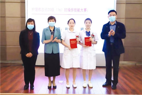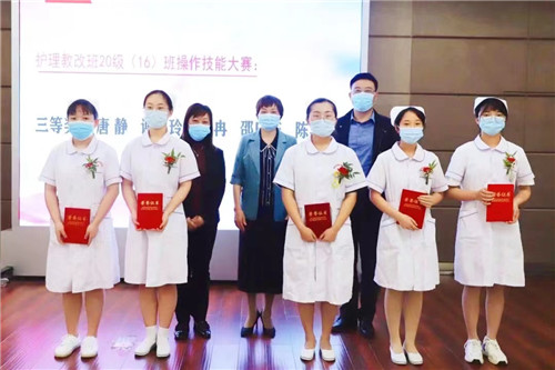 安慶醫(yī)藥高等專科學(xué)校領(lǐng)導(dǎo)為雙主體教改班20級(16)班操作技能大賽前10名獲獎?wù)哳C獎。