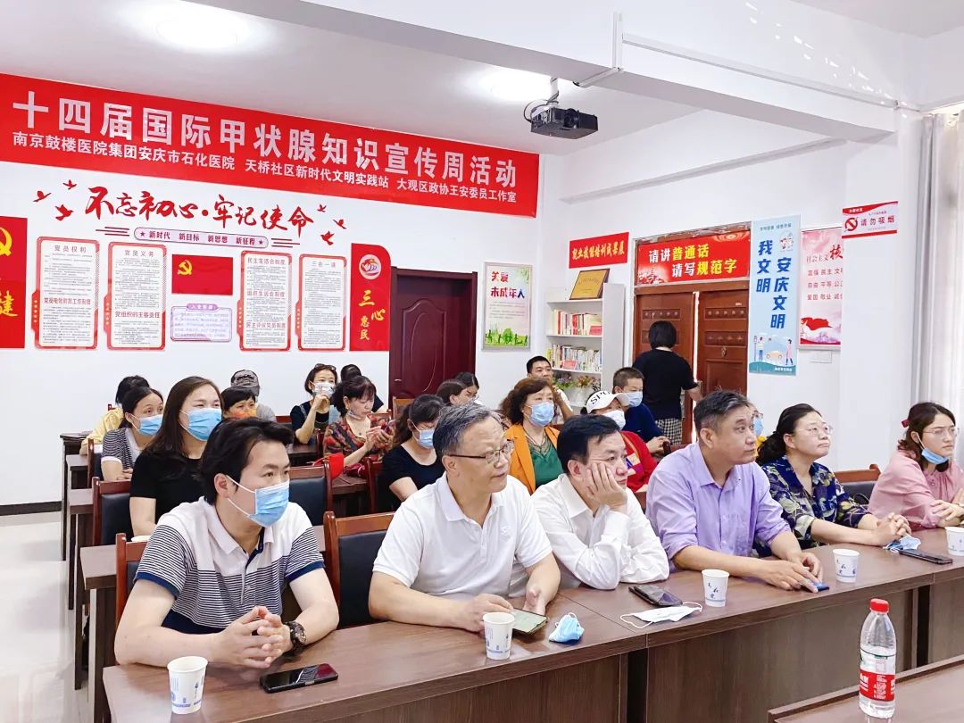 作為江淮名醫(yī)、安慶市政協(xié)委員、大觀區(qū)政協(xié)常委,王安主任于2017年開設(shè)“王安政協(xié)委員健康咨詢工作室”,定期帶領(lǐng)團(tuán)隊深入基層開展義務(wù)健康講座及咨詢活動。此次在“國際甲狀腺知識宣傳周”走進(jìn)社區(qū)宣講,也得到了大觀區(qū)政協(xié)副主席郝艷艷的高度肯定。