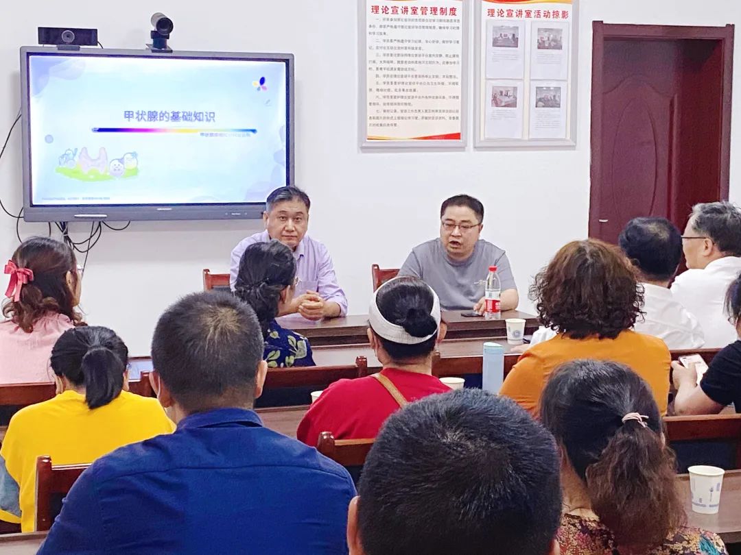 內(nèi)分泌科王安主任和李凡現(xiàn)場為居民答疑解惑,幫助他們正確認(rèn)識甲狀腺疾病,呵護(hù)甲狀腺健康。