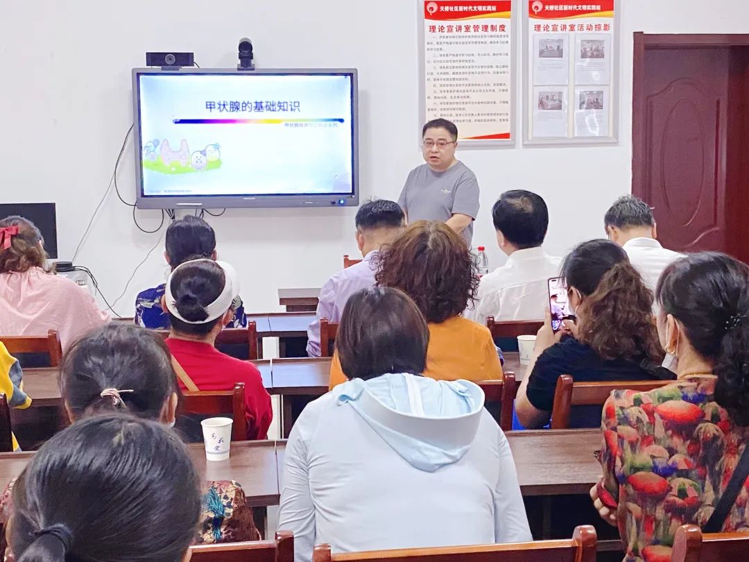 內(nèi)分泌科副主任醫(yī)師李凡現(xiàn)場開展甲狀腺疾病防治宣講,為社區(qū)居民詳細(xì)講解甲狀腺疾病的癥狀、病因、防治以及日常注意事項。