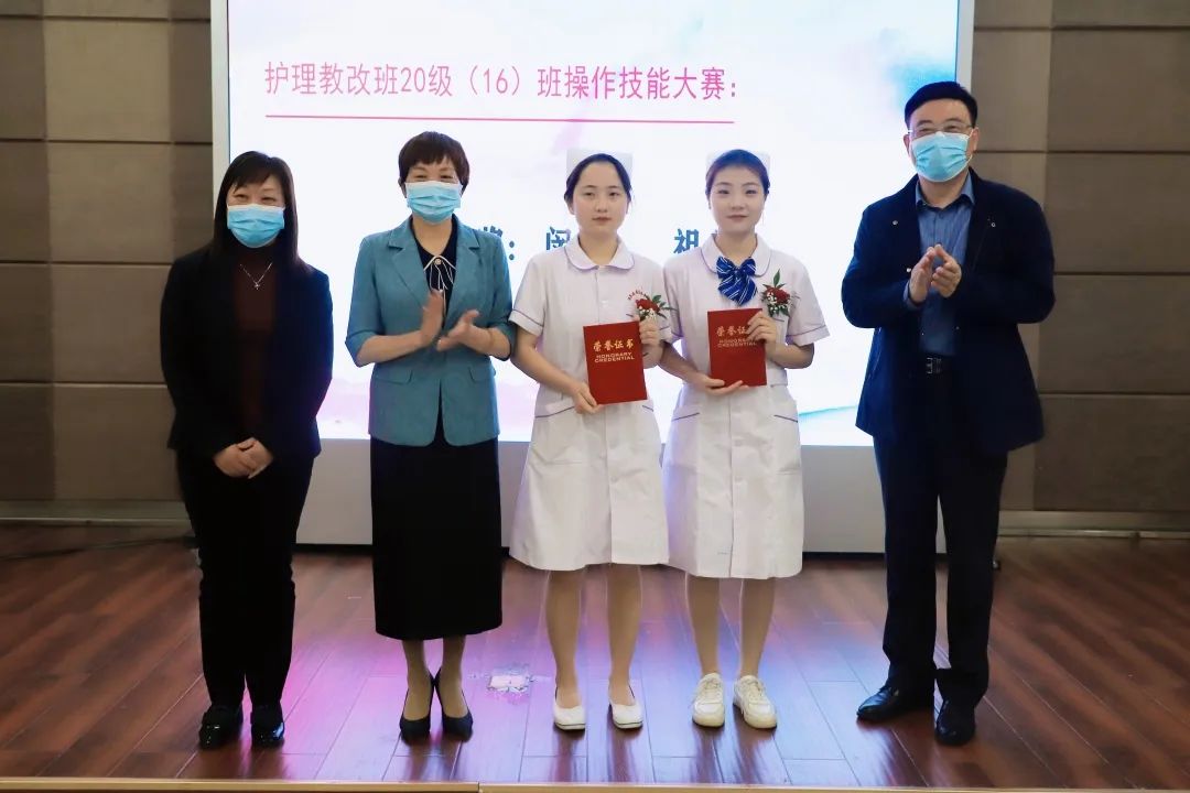 在第111個國際護士節(jié)前夕,教改班還舉辦了心肺復(fù)蘇急救技能操作大賽。同學們認真準備、勤于練習,經(jīng)過理論初賽和操作復(fù)賽的選拔,共有10名選手脫穎而出,分別榮獲一、二、三等獎,并在醫(yī)院護士節(jié)慶祝暨表彰大會上,接受了安慶醫(yī)藥高等??茖W校領(lǐng)導(dǎo)的頒獎祝賀。