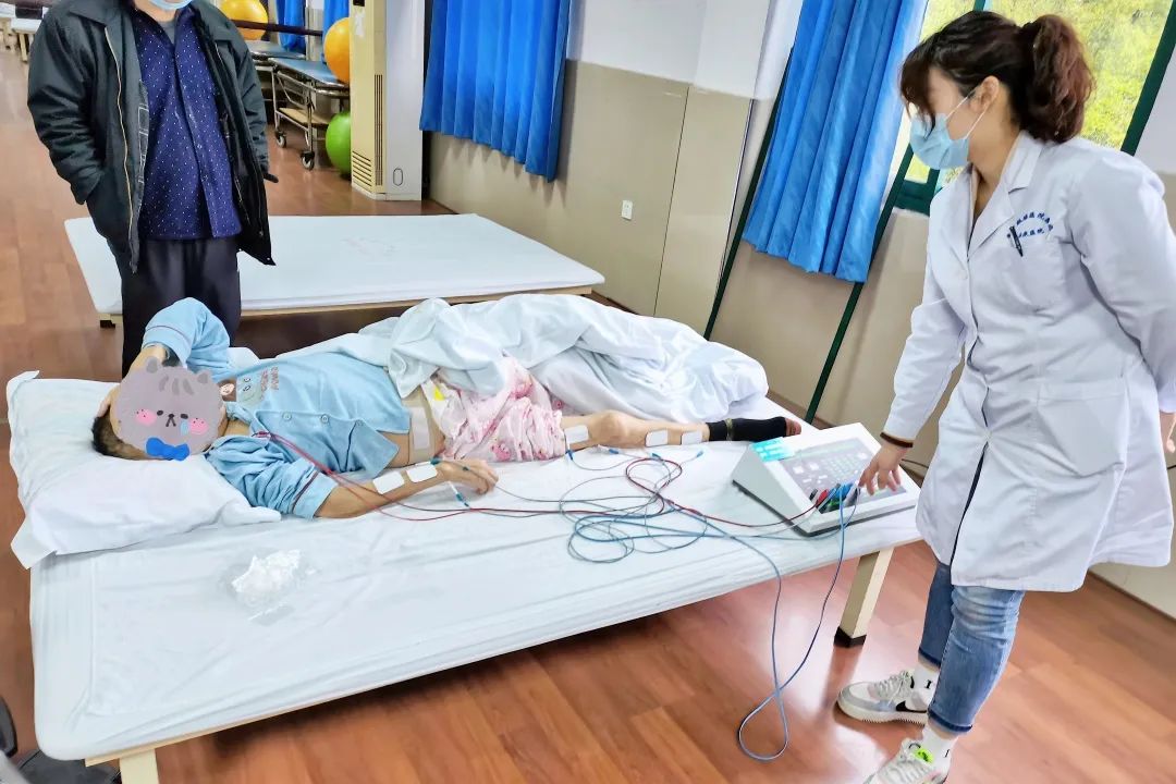 面對丁女士一家人的殷切期盼,康復(fù)醫(yī)學(xué)科負(fù)責(zé)人王義斌、護(hù)士長陳志梅以及治療師團(tuán)隊(duì)高度重視,全面評估患者病情,制定康復(fù)治療方案,采取針灸、中風(fēng)后遺癥推拿、肌力訓(xùn)練、站立訓(xùn)練增強(qiáng)肌力,結(jié)合中頻、偏癱肢體訓(xùn)練等現(xiàn)代康復(fù)方法,保障其得到良好休息。