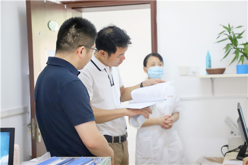 8月4日、5日,金陵藥業(yè)紀(jì)委書記嚴(yán)廣裕、監(jiān)察室副主任嚴(yán)遜、劉寧寧等領(lǐng)導(dǎo),來院現(xiàn)場檢查指導(dǎo)。