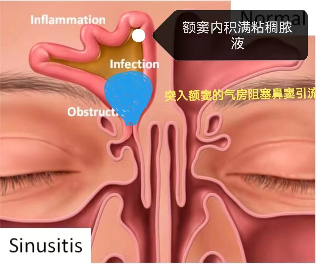 汪文曉書記表示,額竇位于額部,是鼻竇中位置最高的部位,鼻竇口開口在額竇底下。額竇炎引起的疼痛通常表現(xiàn)為整體頭痛,并向前額部放射。夜間睡了一晚,膿液越積越多,膿液流出后流空效應(yīng)造成頭疼,晨起后頭痛會逐漸加重,上午疼痛最為明顯。