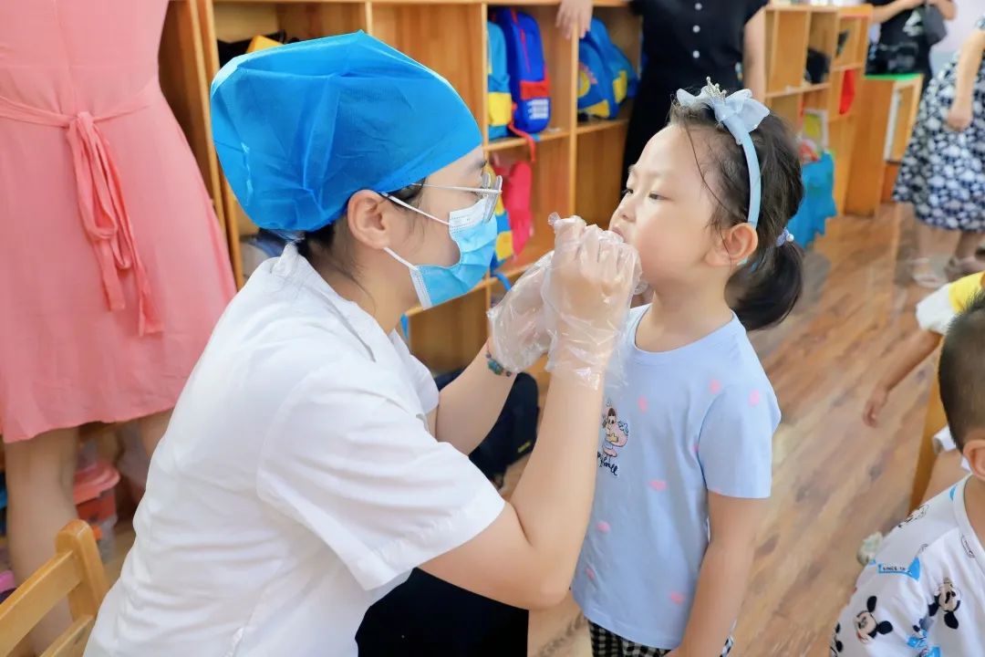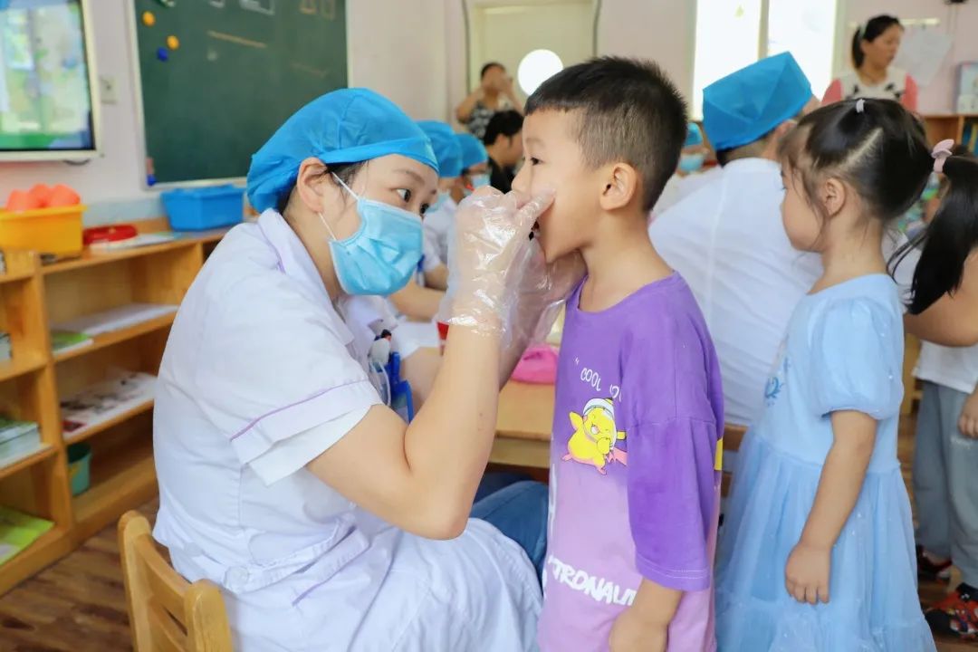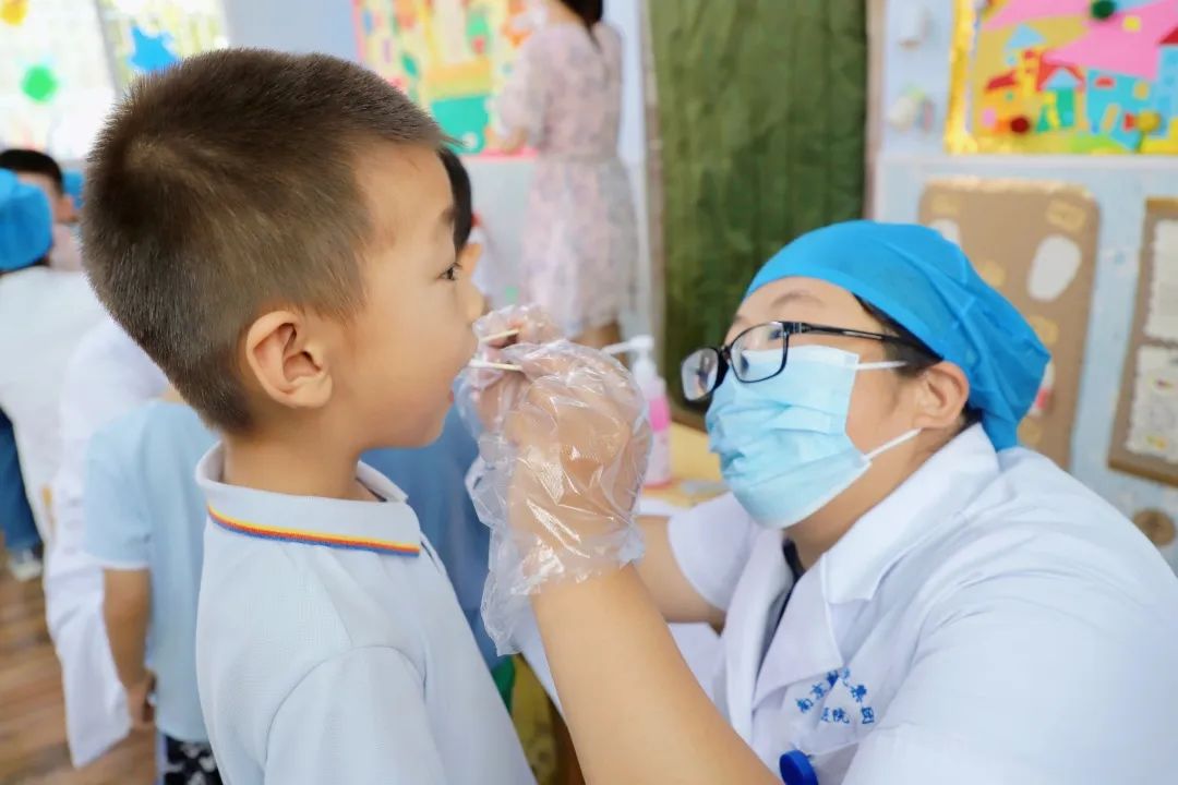 集賢路幼兒園內(nèi),石化醫(yī)院口腔科6名醫(yī)護人員正在為暑假班的小朋友們進行免費涂氟。這是石化醫(yī)院參與全國兒童口腔疾病干預(yù)項目的第4年,2018年至今,石化醫(yī)院已為學(xué)齡前兒童涂氟4000余人次。