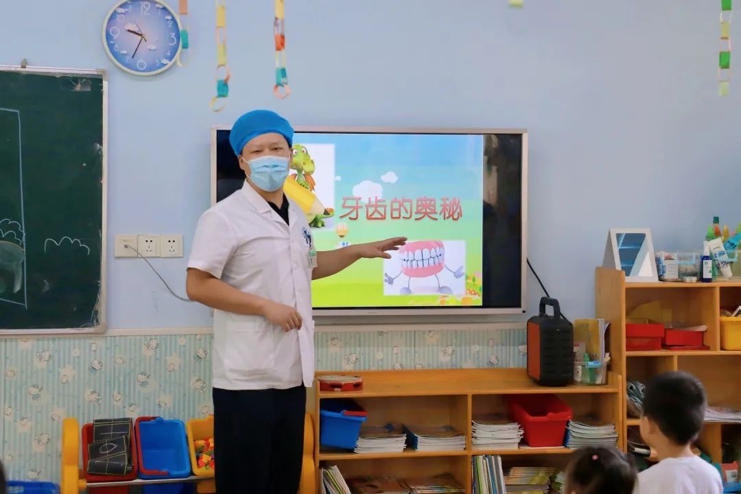 為更好地科普口腔知識,除發(fā)放宣教手冊外,石化醫(yī)院口腔科鮑磊醫(yī)生還特意為小朋友們準備了生動的PPT講解,從牙齒的演化、種類、功能等方面向小朋友揭秘牙齒的奧秘,并通過介紹齲齒的形成讓大家更加重視蛀牙??破招≌n堂在小朋友們稚嫩又整齊的刷牙歌聲中結(jié)束。